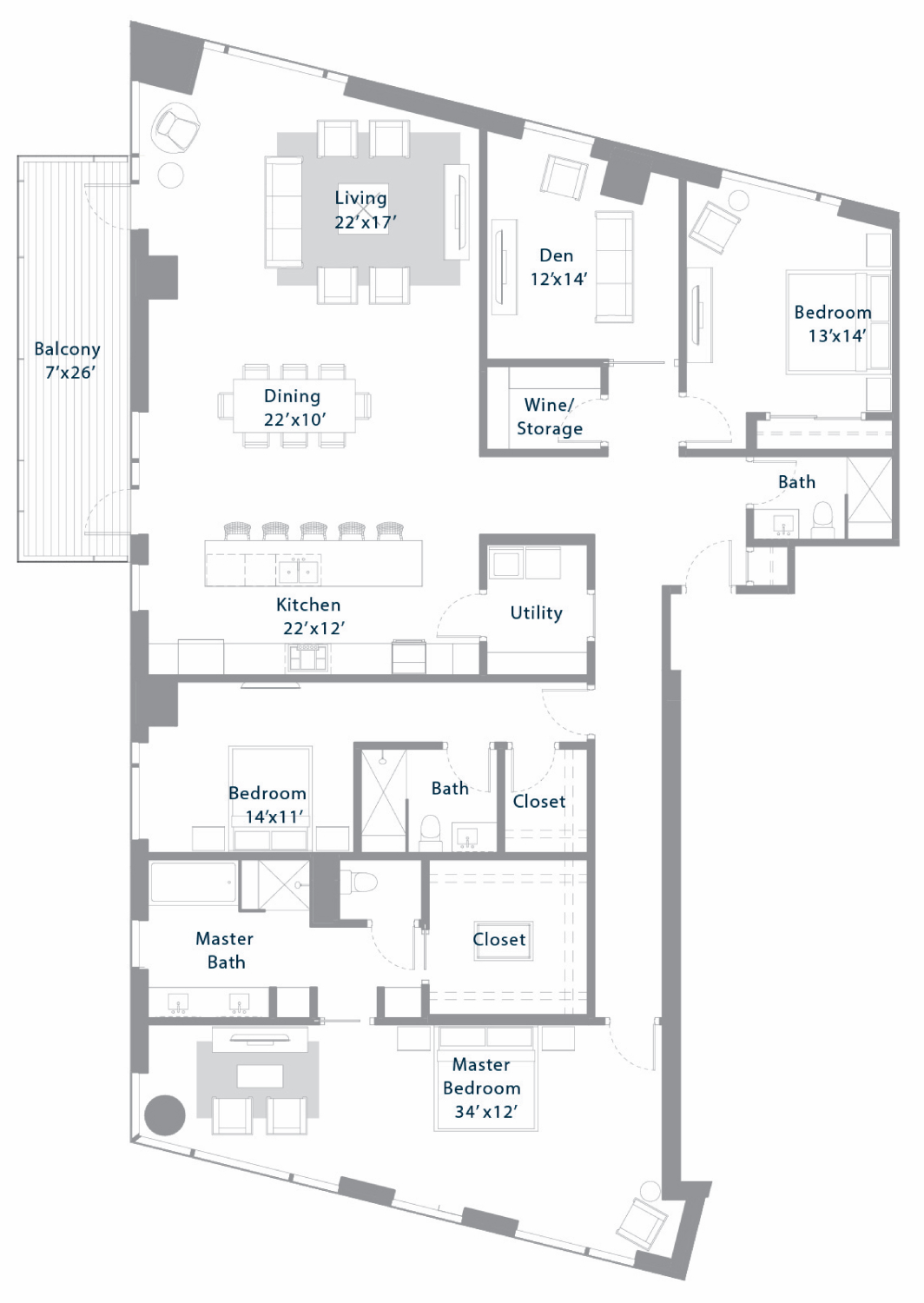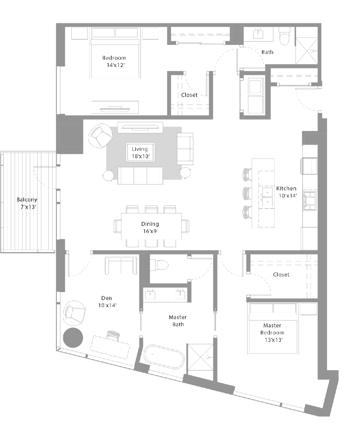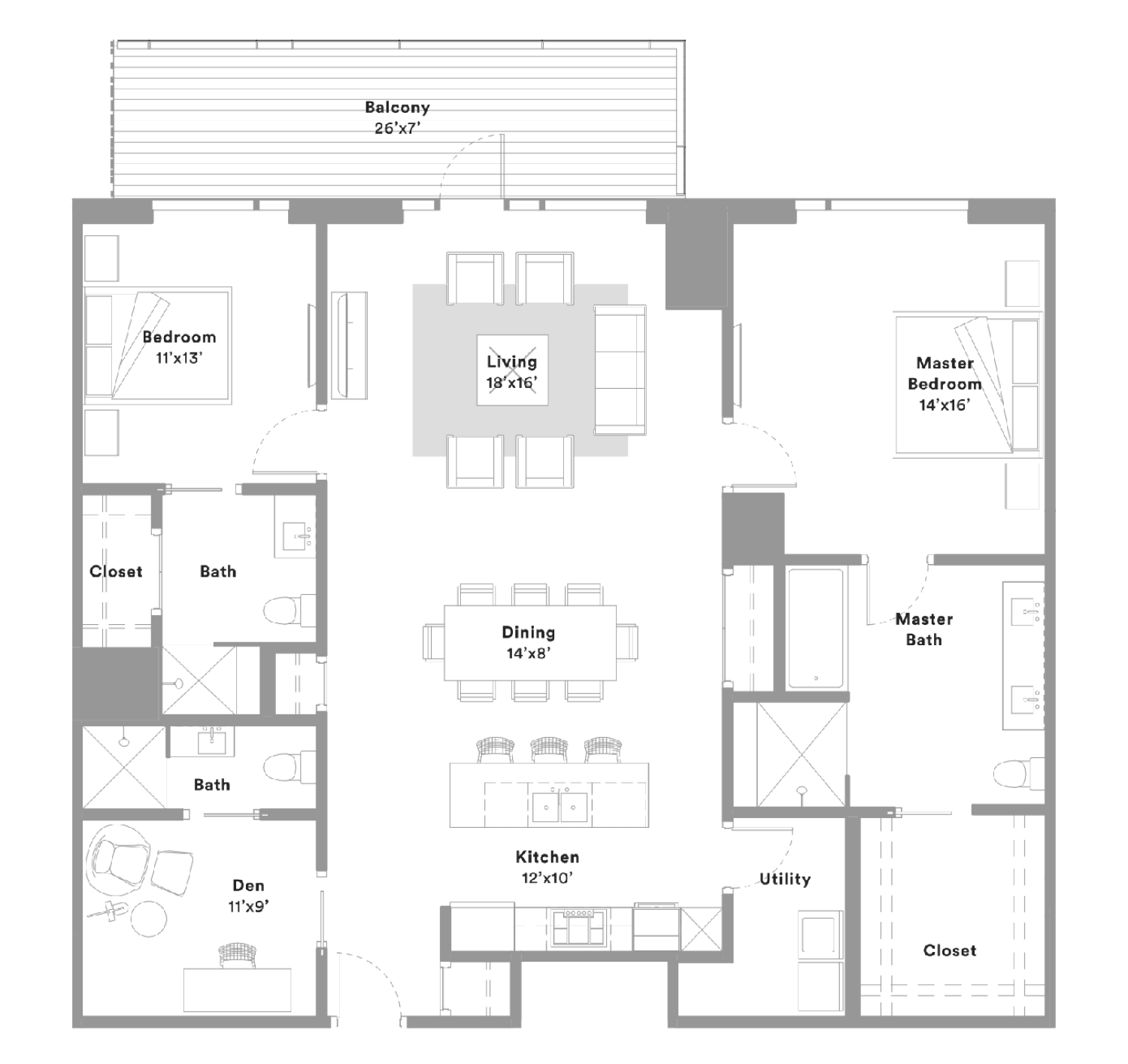Interior: 1,434 SqFt / Balcony: 124 SqFt