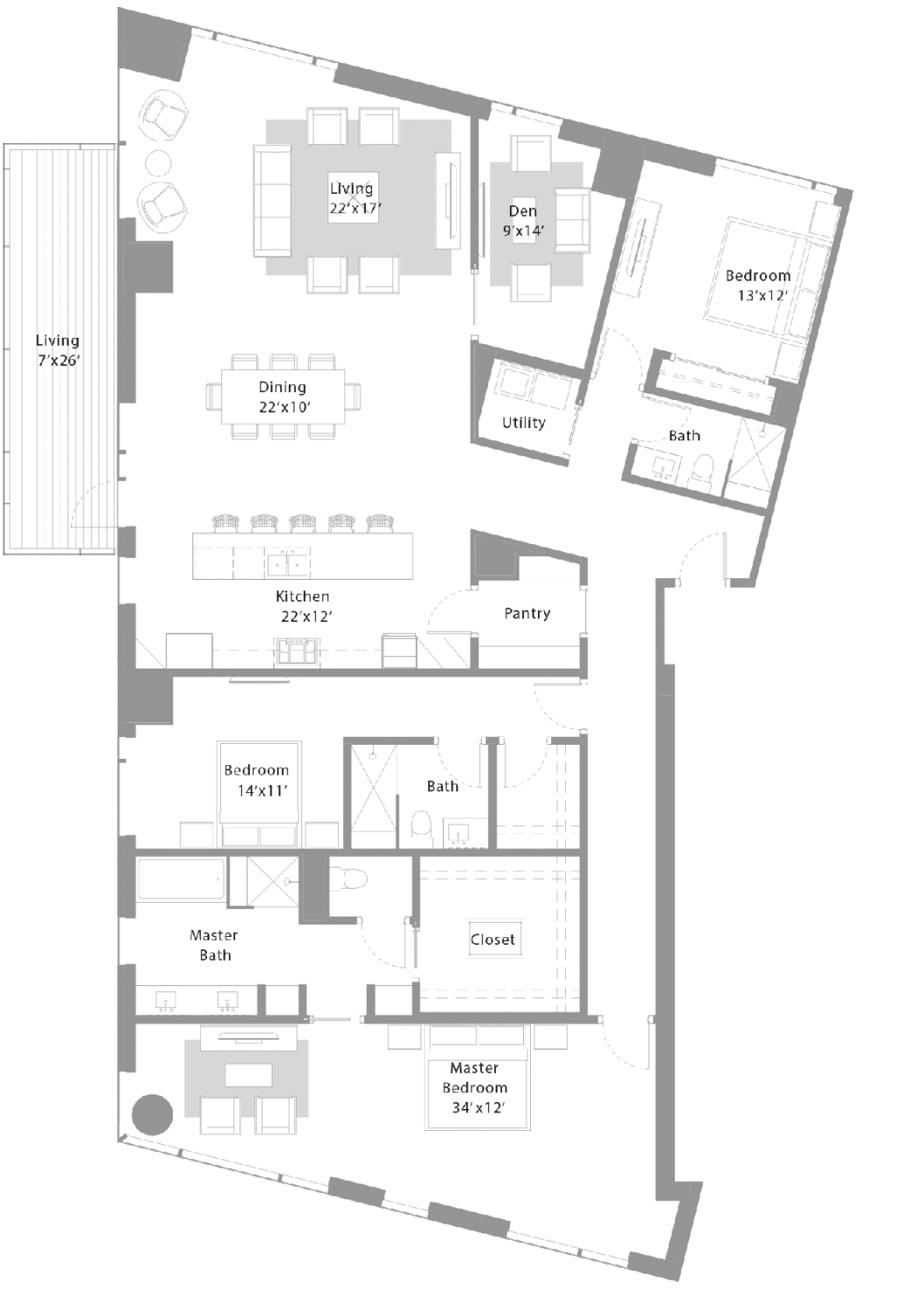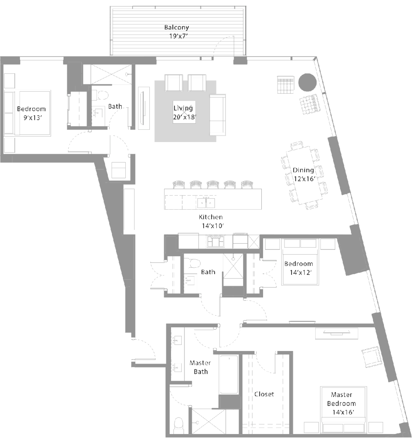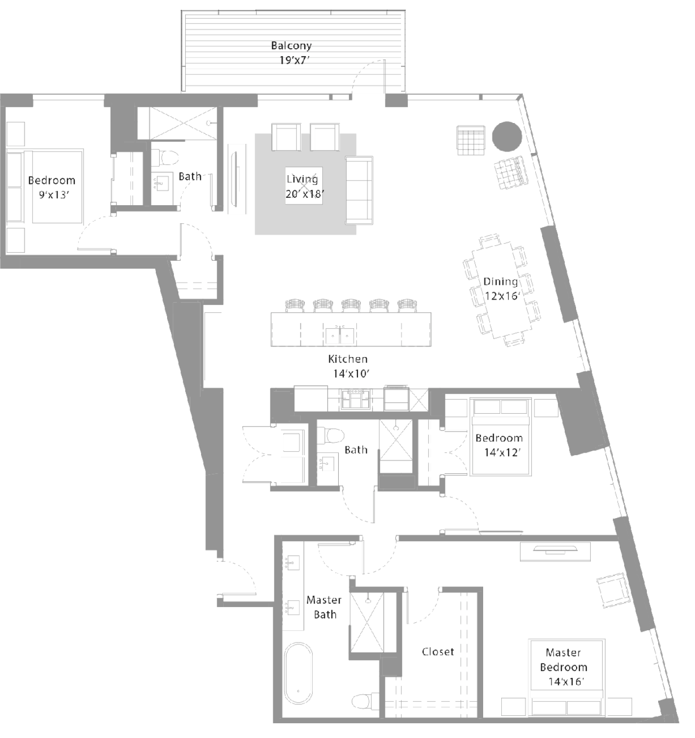 Interior: 1,434 SqFt / Balcony: 124 SqFt