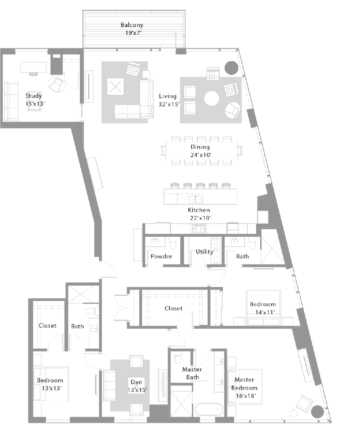 Interior: 1,743 SqFt / Balcony: 198 SqFt